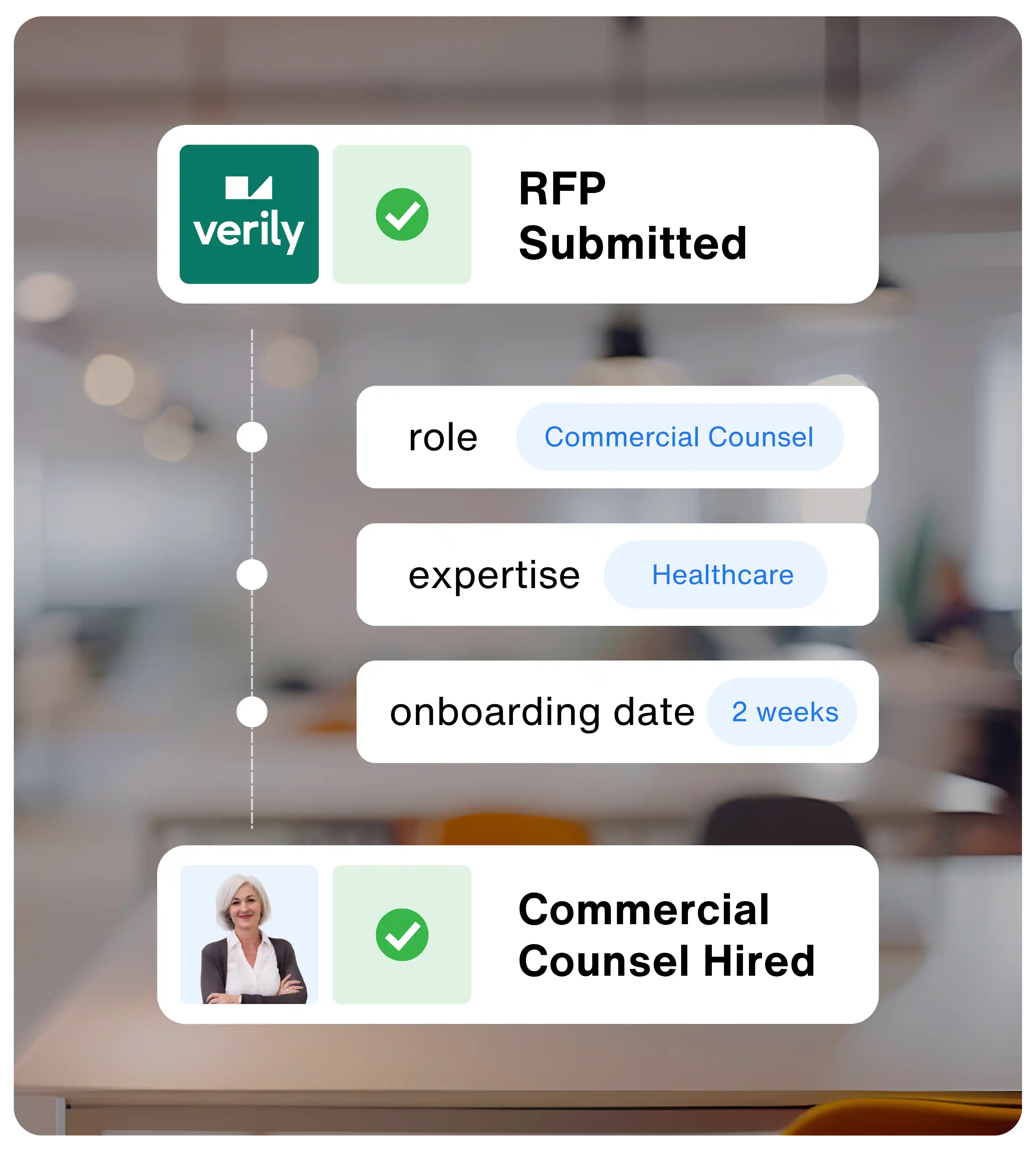 Verily needed experienced commercial counsel to handle a surge in healthcare agreements. They required someone who could hit the ground running - drafting and negotiating contracts while collaborating with internal teams and vendors. The challenge was finding high-caliber talent quickly without the premium costs of outside counsel.